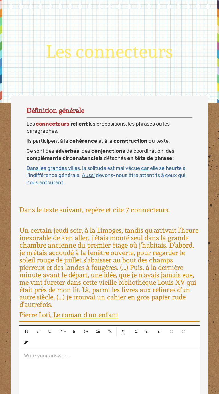 Les Connecteurs Interactive Worksheet Wizer Me
