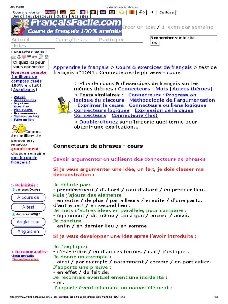 Connecteurs De Phrases Langue Francaise Langues