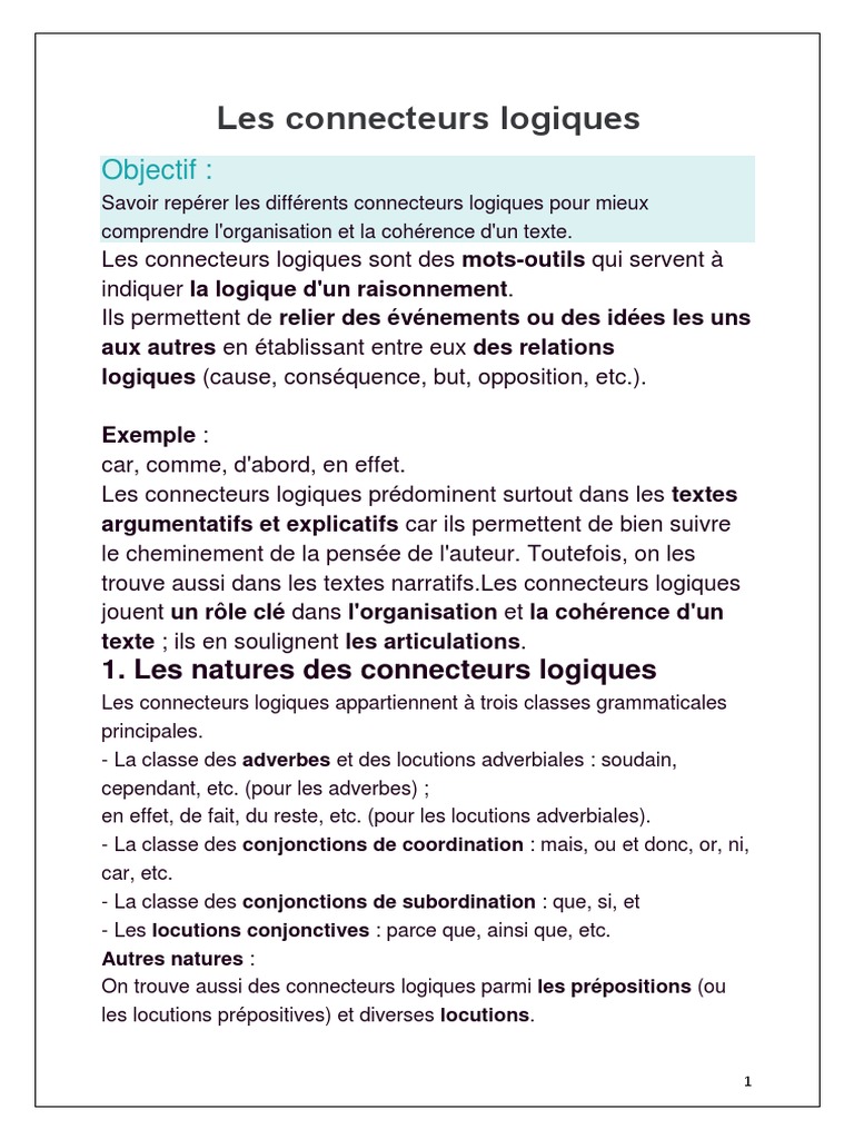 Les Connecteurs Logiques Docx Adposition Mecanique Du Langage