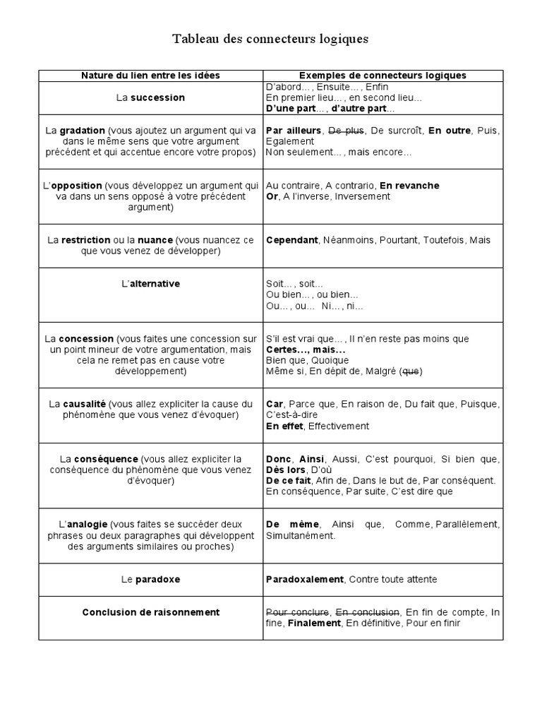 Tableau Des Connecteurs Logiques Pdf