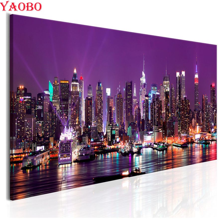 Acheter 5D DIY Diamant Peinture New York City Nuit Vue Plein Carré Paysage De Broderie Percer 3d Images Point De Croix Mosaïque Décor De 16,89 € Du Igarden002 | DHgate.Com